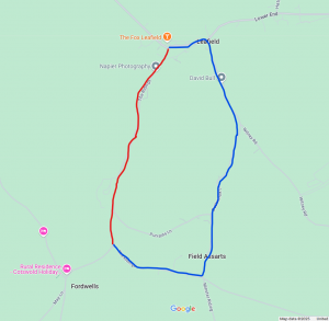 via The Ridings – Buttermilk Lane – Witney Lane – The Greens and vice versa